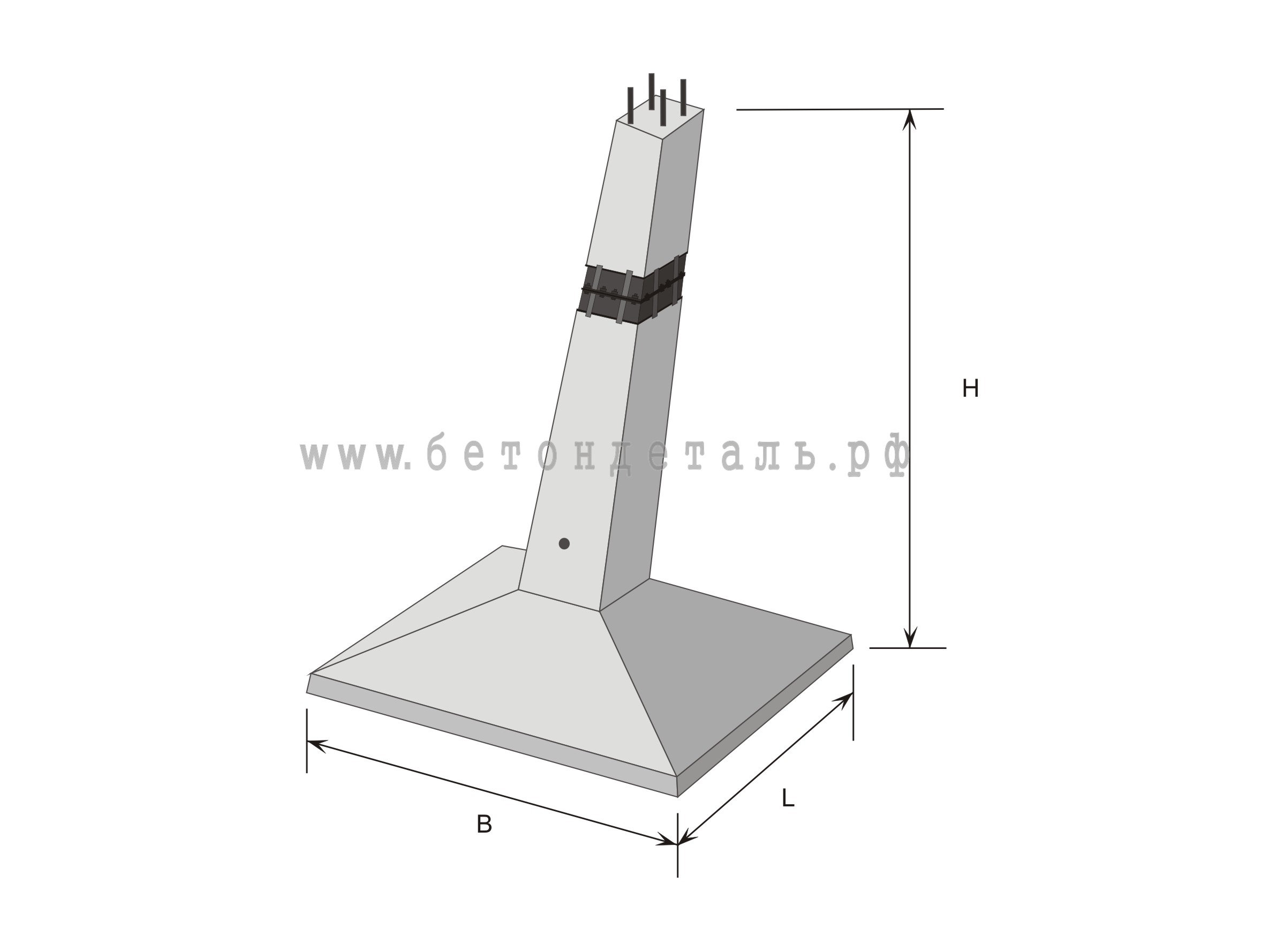 Фундаменты укороченные ФПБ 5 А5 предназначены для металлических анкерно-угловых опор ЛЭП напряжением Вл 500 кВ. Это монолитная конструкция, по своей форме напоминающая форму перевернутого гриба. Наличие наклонной стойки облегчает нагрузки на фундамент. Подножники используются в таких сложных местах, где требуется высокая стойка: берега рек, болот, озер, косогоры оврагов.