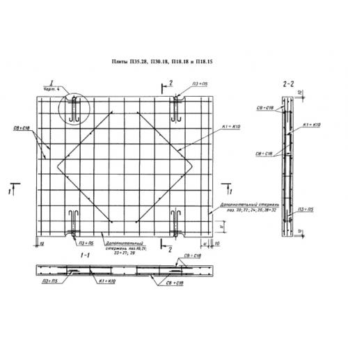 1П 35.28-30 Плита прямоугольная с ненапрягаемой арматурой для постоянных дорог.
