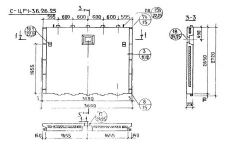 Панели стеновые цокольные СЦР1-36.26.25  (Серия 1.117-12с).
