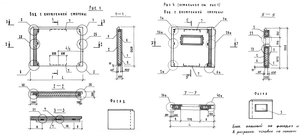 1 (2) - характер проемов (панель без проемов - 1, панель с окном - 2).