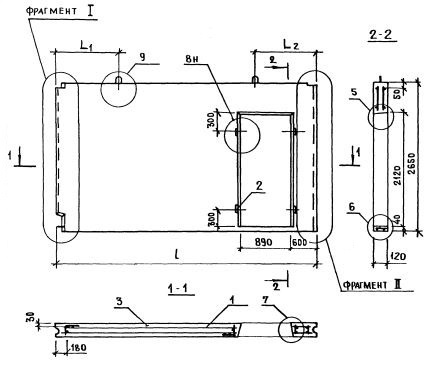 1,2,1,3 - индексы, характеризующие положение панелей в плане здания и их конструктивные особенности ( 1-панели поперечных стен или панели продольных стен, примыкающих к торцу здания; 2 - панель с проемом, 1 - ширина проема 890 мм; 3 - ширина меньшего простенка 600 мм).