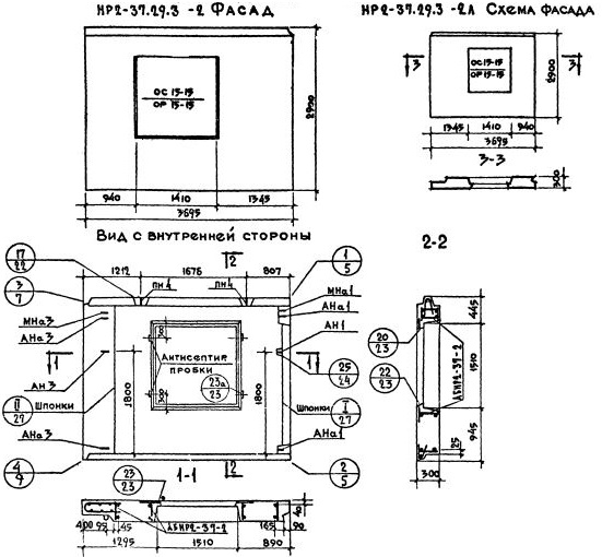 НР2-37.29.3-2   Наружная стеновая панель рядовая по Серии 1.132-1.