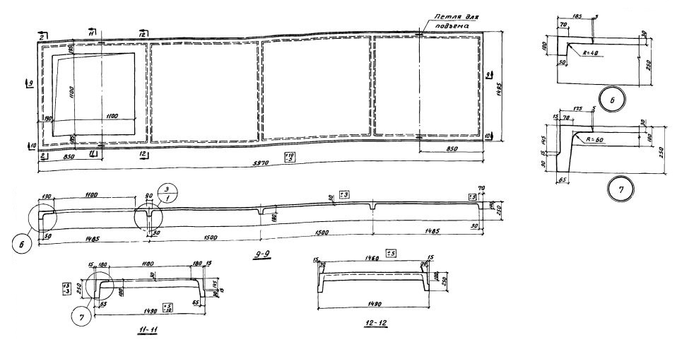 В соответствии с рабочими чертежами каждому железобетонному изделию присваиваются марки, которые состоят из буквенных и цифровых индексов. Маркировка плиты СПР 60-300-11 расшифровывается следующим образом: